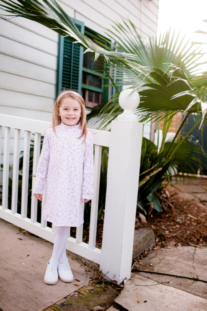 This is the SWEETEST print! The light pink ballerina details and classic A-line shape make this a staple in every little girls closet this fall!