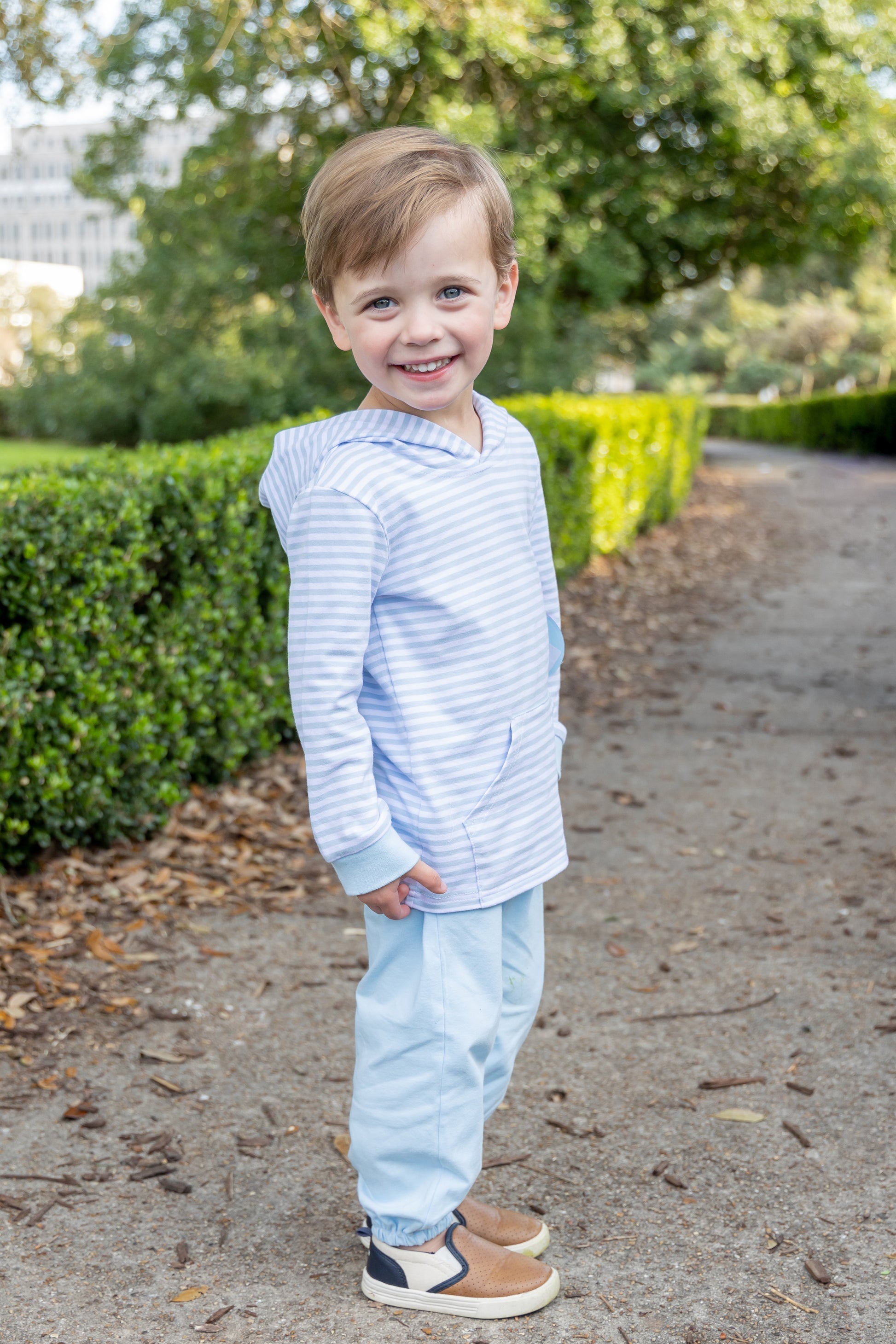 We are in love with this striped knit hoodie set! Check out the darling sister match under the little ladies section!
