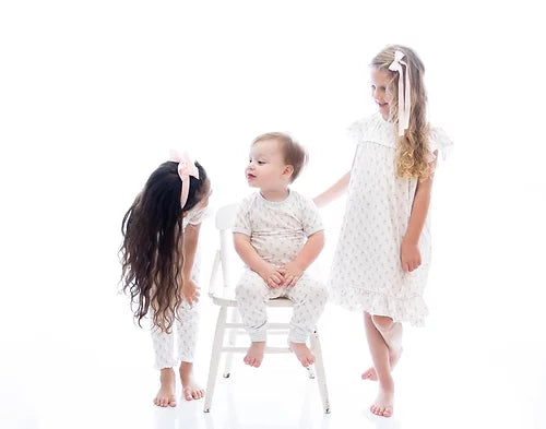 Little Bunny Foo Foo is making her appearance on our girls ruffle pj set! Grab this for Easter or all year long! You can find the matching nightgown under the Little Ladies section and the boys pants set under Little Lads! These PJs are so soft!